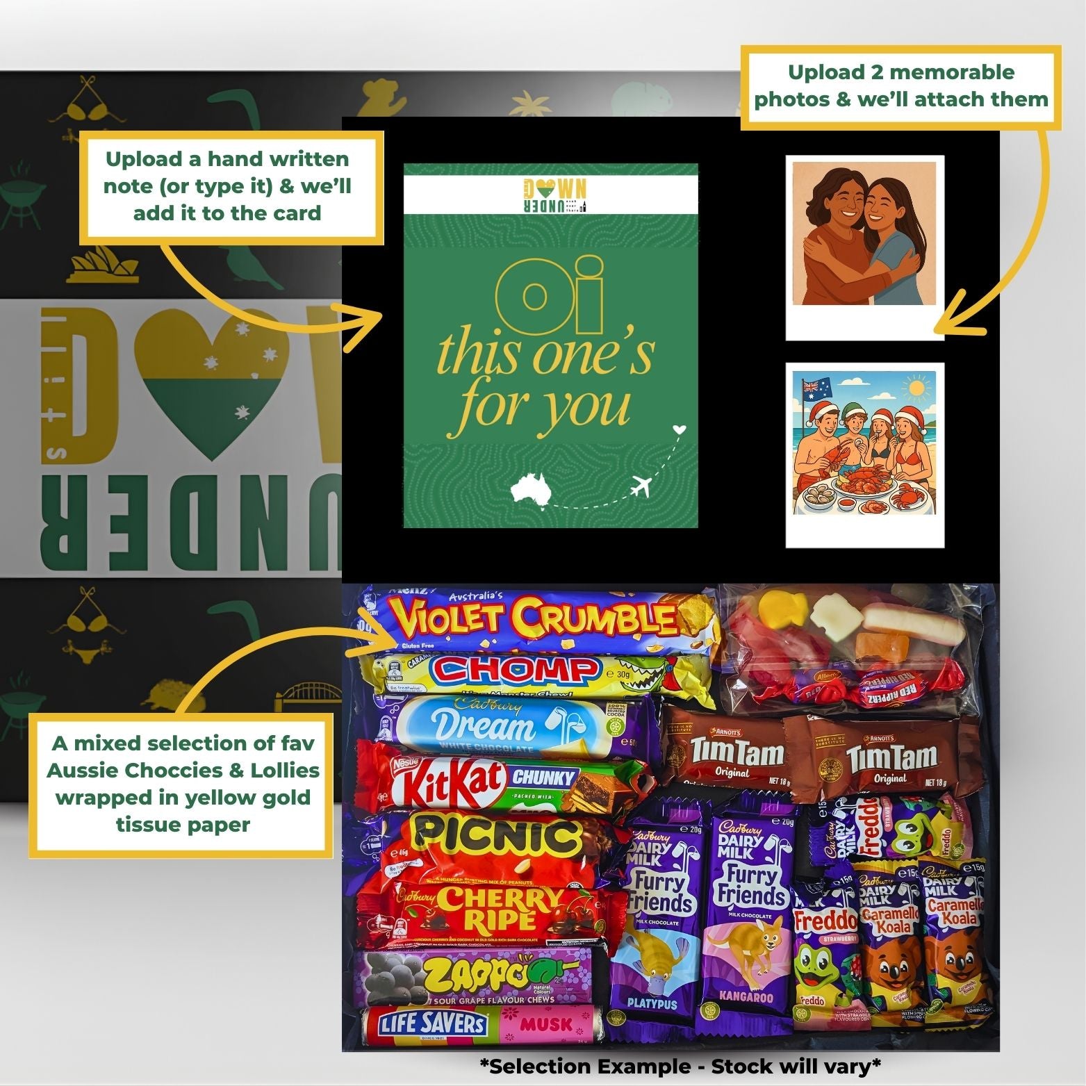 Missing someone over there? Send authentic Aussie choccies & lollies, packed in the UK and delivered fast - no customs, no stress.